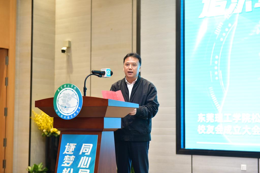 马宏伟代表学校向校友会成立表示热烈祝贺,回顾了学校近年来的跨越式发展。他表示,功能区校友会的成立是学校迎接建校30周年的一件喜事,希望校友们借力松山湖科学城的产业、科技、人才等政策,把校友会平台搭建好,服务好校友企业发展;挖掘一批“专精特新”明星校企,扶持一批创新创业校友,服务松山湖功能区科技山水,促进政、产、学、研融合,驱动区域科技、经济、人文高质量发展,实现校友、学校、地方共赢发展;校友们要知行合一,在实践中成长成才,成为新时代的有为青年。