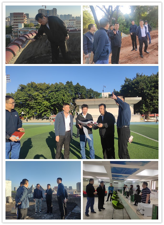 马宏伟一行先后来到莞城校区师生办事服务中心、智慧教室、桂子山、学生活动中心、运动场、游泳池和教工宿舍顶楼等场所实地查看,认真听取相关工作汇报,详细了解建设进展情况。根据退休教师反映教工宿舍年代久远,楼顶因风化严重,导致严重漏水,马宏伟一行到教工宿舍8栋顶楼进行现场勘察。他指示秉持“群众利益无小事”的原则,要求资产与实验室管理处积极联系专业施工团队,共同商讨解决方案,克服困难,尽快解决漏水、排污管老化等问题。