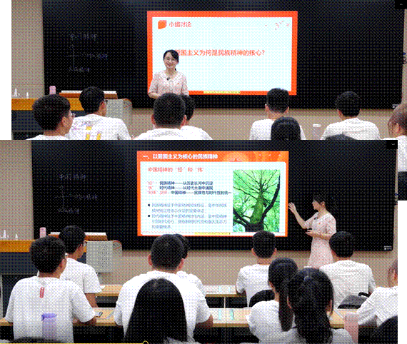 朱丹华以“中国精神是民族精神与时代精神的统一”为课例主题,从历史渊源、时代背景、重大意义等角度,阐述了民族精神和时代精神的丰富内涵以及两者之间的辩证统一关系。整场展示紧密联系学情,深挖红色资源,以生动流畅的语言引导学生深入思考、热烈讨论,使之深刻体悟中国精神的深刻内涵,鼓励学生在学习、生活中身体力行,自觉践行中国精神。