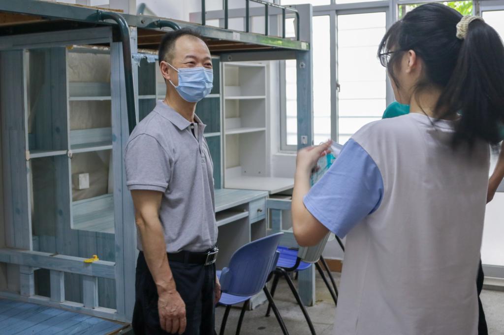 校领导与新生亲切交谈,询问他们关于新生报到安排的建议,以及新生报到前的准备等。成洪波叮嘱同学们在校园里要注意做好自身疫情防控工作,要在大学四年里认真学习,取得好成绩。此外,他还要求辅导员与班主任要帮助新生适应新的环境,加强与新生的沟通与交流,引导、关心、管理好每一位学生,与同学们建立良好的互信关系,营造和谐融洽的班级环境。