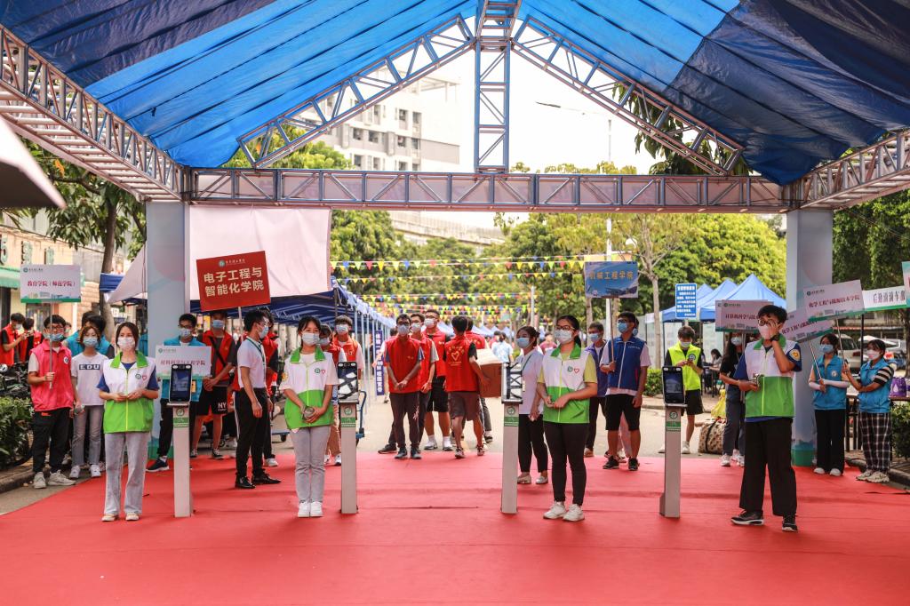 在校内,学校各部门及各二级学院安排了志愿者,全程为新生提供迎新报到服务。迎新志愿者们为新生耐心地指引报到流程、答疑解惑。2021级新生们在迎新志愿者的帮助和引导下,独立完成各项报到手续,体验自我成长的喜悦和成就感。