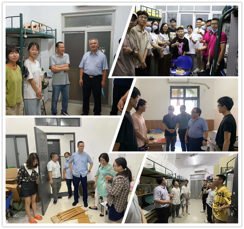 校党委书记成洪波,校党委副书记、校长马宏伟,校党委副书记李忠红分别到两校区检查指导新生报到工作。在两校区的学生报到处,校领导详细了解新生报到情况以及学生报到流程内容,对学生校内管理、志愿者服务工作、学生社区管理等工作提出要求;校领导还到学生宿舍走访刚到校的新生,了解同学们初到莞工的感受,欢迎2021级新生的到来。