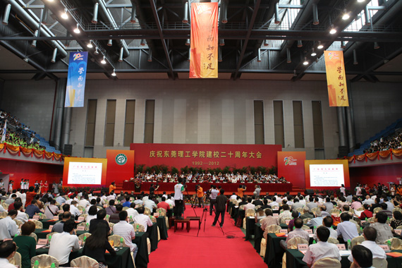 庆典大会总结了学校20年来的发展成就,表彰了10名“莞工突出贡献奖”获得者和20名杰出校友,并宣读了上级有关部门、社会各界、兄弟院校和国外友好高校发来的贺信贺电。