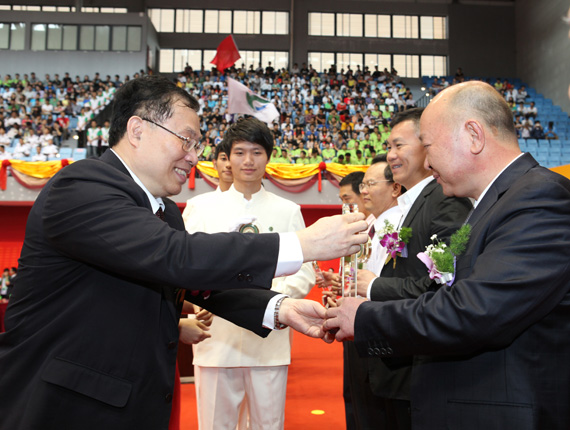 4月28日,在建校20周年庆祝大会,学校表彰了10名“莞工突出贡献奖”获得者,感谢他们为我校建设和发展作出的贡献;20名杰出校友,肯定他们为推动东莞经济社会发展作出的努力。学校领导杨晓西、黄碧莲分别为获奖者颁奖。