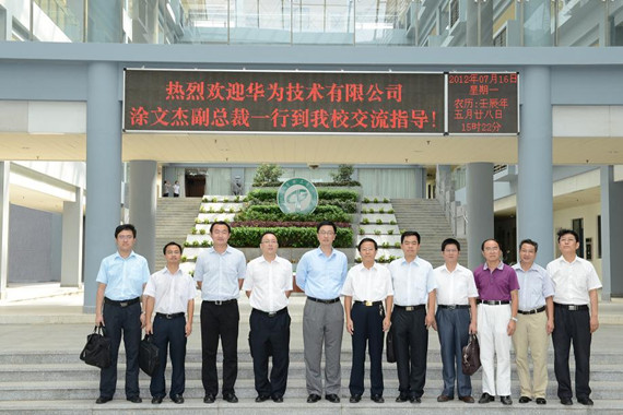 7月16日,华为技术有限公司企业业务全球副总裁涂文杰一行来校商谈校企合作事宜。副校长邹晓平及教务处、计算机学院负责人等接待了涂文杰一行。