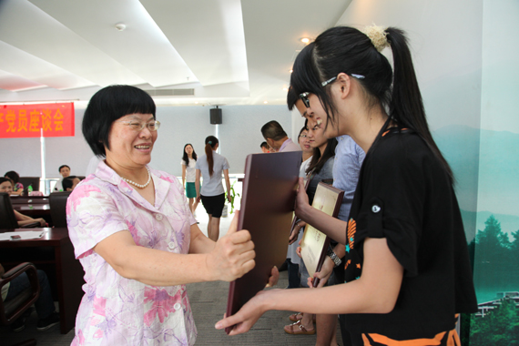 在建党91周年来临之际,6月27日下午,我校表彰一批 在“创先争优”活动中表现突出的先进基层党组织和优秀共产党员。学校党委书记成洪波、党委副书记黄碧莲分别为获奖集体和个人颁奖。校党委副书记吕琦元主持会议。