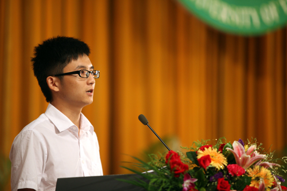 来自电子工程学院、考上中国科技大学研究生的于斌代表毕业生发言。他满怀深情地回首了大学生活,表达了对母校悉心培养的感激之情。