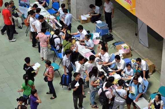 9月7日,我校莞城校区再度热闹起来, 2012级新生带着喜悦的心情在学校志愿者的帮助下有序地办理完入学手续后,正式开始大学生活。