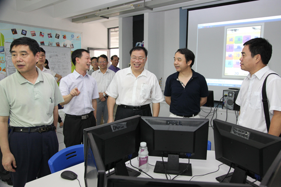 在我校杨晓西校长、李忠红副校长陪同下,王贻芳所长参观我校实验室