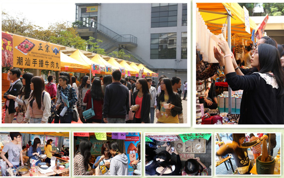 11月1日至4日,我校学生宿舍区格外热闹,特别是中午和晚上,那里俨然成了一个熙熙攘攘的综合市场。美食、日常用品、电子产品、花卉、书籍等在那里皆可寻觅,还有美女厨房、“叮王之王”争霸赛、Band队狂欢夜等活动在那里精彩上演。