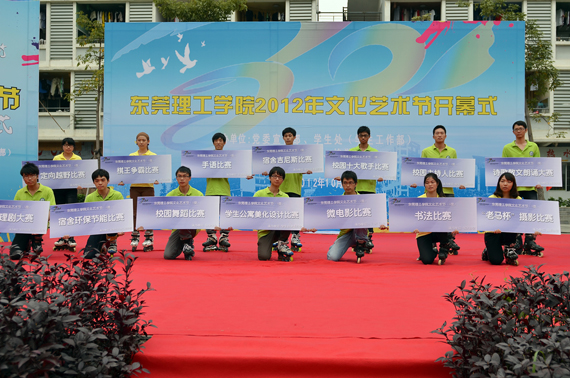 一轮富有岭南特色的醒狮表演后,由学校各社团精心准备的节目陆续登台表演。街舞、古乐合奏、、跆拳道和Cosplay等形式多样的节目赚足了观众的欢呼声。其中,手语协会特别为正在重病房的程梁载同学送上手语表演《我们都一样》,希望他能渡过难关,尽早恢复健康。此外,今年的社团文化艺术节更是邀请到了东莞职业技术学院的交流团来我校参观交流,由其交谊舞协会带来的舞蹈表演《青春的旋律》让莞工学子一睹了其他学校优秀的社团文化。