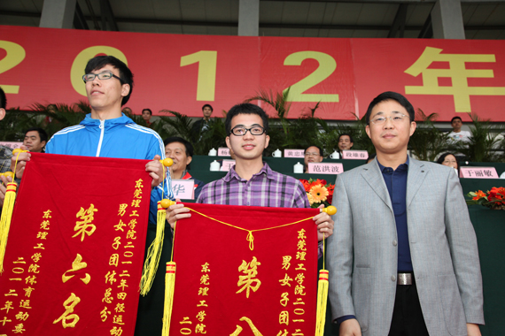 12月7日下午, 我校2012年田径运动会胜利闭幕。学校成洪波、杨晓西、吕琦元、邹晓平、戴炳源、李忠红出席闭幕式,并为获奖代表队颁奖。