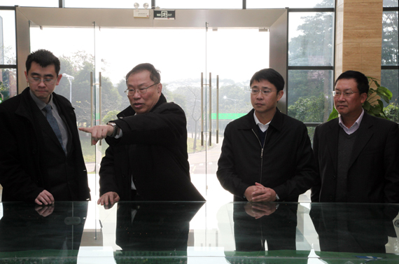校领导成洪波、杨晓西、吕琦元、安少华,东莞市金融局局长叶浩鹏、调研员刘凯文,松山湖管委会副主任李航,松山湖科技局副局长梁丽华等与客人座谈。