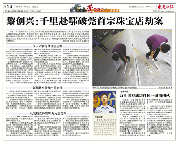 《东莞日报》:黎创兴:千里赴鄂破莞首宗珠宝店劫案