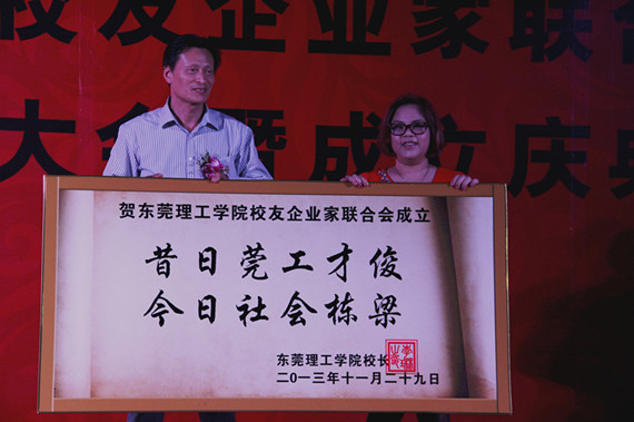11月29日,我校校友企业家联合会第一次会员大会暨成立庆典在松山湖校区会议中心举行。校长李琳专程题词“昔日莞工才俊,今日社会栋梁”贺我校校友企业家联合会成立。
