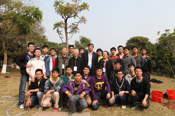 12月10日,在同学们的欢迎声中,在我校参加散裂中子源工程科学技术委员会第二次会议的陈佳洱、魏宝文、方守贤、邱爱慈、陈森玉、张焕乔、胡仁宇、沈保根、王鼎盛、沈文庆、柴之芳、朱邦芳、陈和生等13位院士沐浴着融融的冬日暖阳,在我校“院士林”分别种下了一株桂苗。在植树过程中,院士们还亲切地与同学们进行交谈,令同学们开心不已。