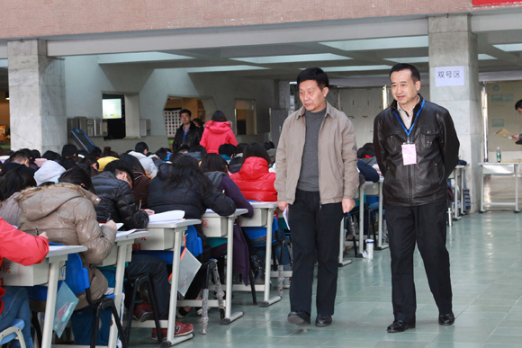 12月25日,校党委副书记、纪委书记、副校长安少华到莞城校区四号楼大厅考场检查期末考试工作。安少华对考场安排、监考教师到位情况等进行了检查,并巡视了考场,仔细查看学生考试状态,对现场考生自觉遵守考场纪律、监考老师认真监考的情况表示满意。 据悉,由于今年大一新生军训时间定在本学期末,根据教学安排,莞城校区新生2013-2014学年度第一学期期末考试提前开始,于12月24日—12月31日在大厅集中进行,涉及考试科目21门,共有77个班级,3522人参加考试。