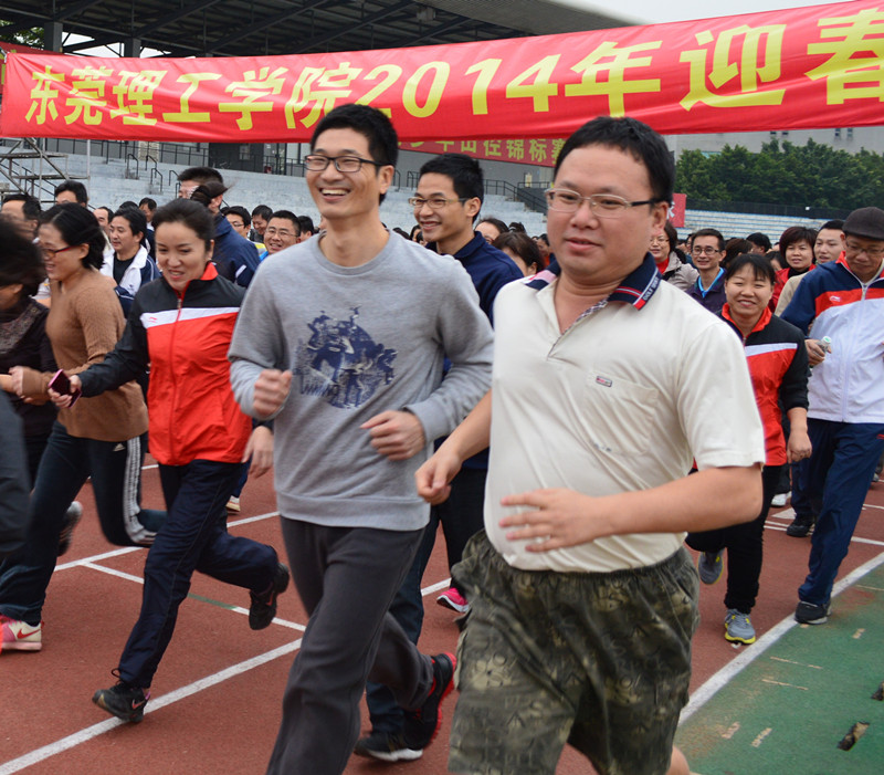1月9日下午,我校工会组织全校教职工在松山湖校区举行一年一度的迎春长跑活动。虽然天气寒冷,但教职工参加长跑的热情不减,在党委书记成洪波打响起跑发令枪后,千余名教职工迈开矫健的步伐,以良好的精神面貌喜迎新一年。 长跑队伍从主田径场出发,沿第二食堂、师范学院、图书馆、行政楼、教工宿舍慢跑,最后返回第二食堂。队伍在校园里形成了一道独特的风景线。参加长跑的教职工纷纷表示,运动有益身心健康,以这样一种全民健身的方式迎接新年非常有意义。(黄韵珊/图)