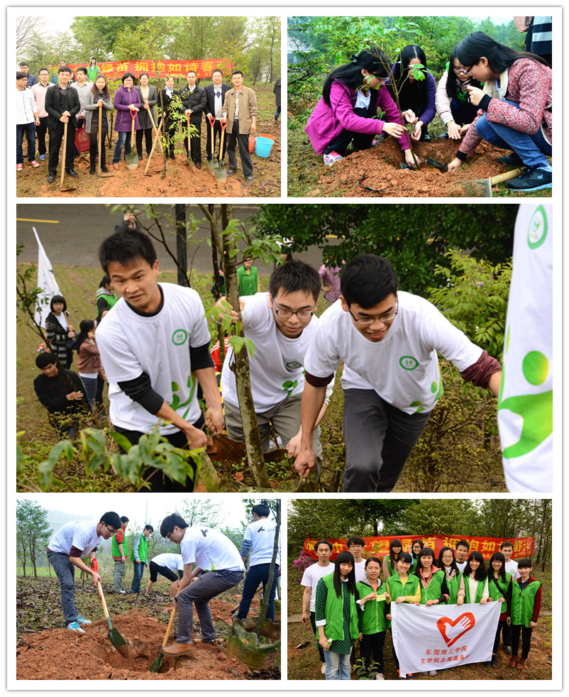 中国建设银行东莞分行,我校学生处、团委、文学院相关负责人,各校级学生组织代表,文学院人文实验班全体同学及各院系志愿者代表参加了植树活动。