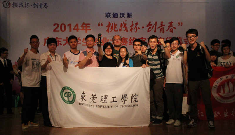 我校参加2014年“挑战杯•创青春”广东大学生创业大赛的作品,主要依托创业学院和“莞科计划”进行培育,经过了学生处、团委、教务处、科研处、创业学院、机械工程学院协同举办的校赛的遴选。学校团委先后邀请了企业家、风险投资家和校内专家教授等为参赛学生开展计划书撰写、答辩技巧、模拟答辩等培训和指导,入围决赛作品所在院(系)也积极开展赛前模拟答辩,推动团队快速提升参赛水平。经过努力,推报的17个项目中有11支队伍入审省赛终审决赛、6支队伍入选省赛参展。学校近100名师生组成代表团赴广州参赛,是我校“挑战杯”参赛史上规模最大、阵容最强的团队。