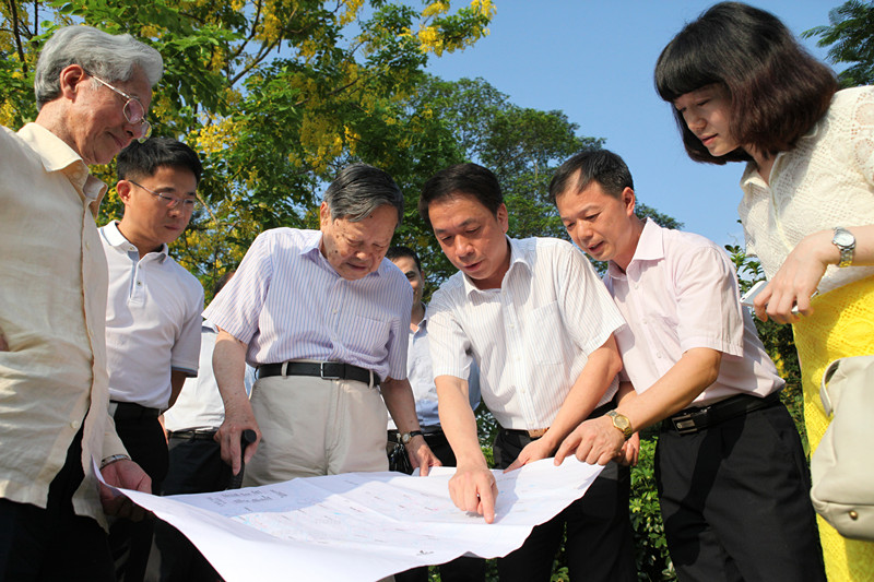 杨振宁博士伉俪参观校园,听取介绍