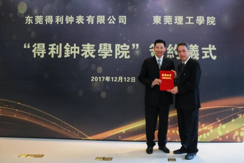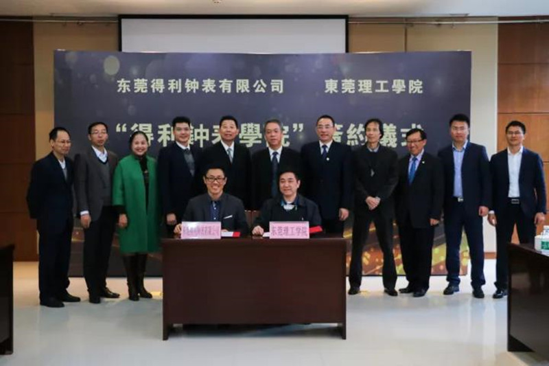 12月12日,我校与东莞得利钟表有限公司联合组建“得利钟表学院”并举行签约仪式。我校校长李琳、副校长杨敏林,东莞得利钟表集团董事长梁伟浩、总经理刘仁出席仪式。签约仪式由我校发展与联络办主任崔学海主持。