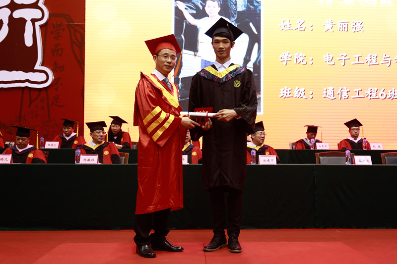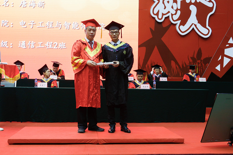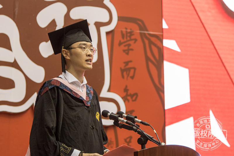 法律与社会工作学院(知识产权学院)2018届行政管理专业毕业生刘卓宏作为毕业生代表分享了他的个人成长经历和学校给予他的帮助,表达了对学校师生的深深感激之情。“从初入莞工的青涩与懵懂,到今天将要离开的成熟与坦然,这里,不仅铭刻了我们的青春记忆,还铸就了我们的未来动力。”他号召毕业生们要谨记“学而知不足”的校训,保持着求知的初心,不断汲取知识,不断提升自我,拼出属于自己美好的未来。