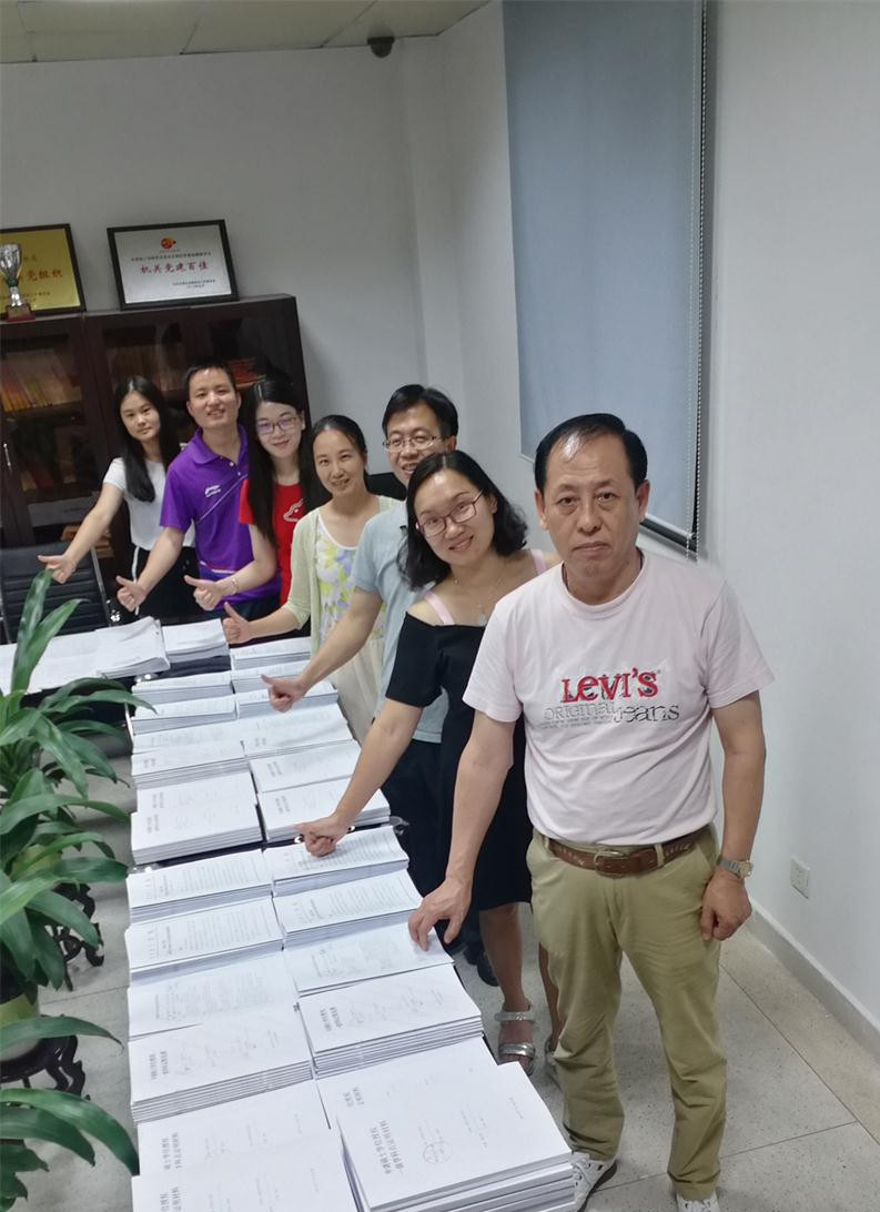 申硕中的一摞摞的材料,是杨光团队夜以继日的加班加点中形成的