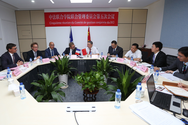 联合管理委员会主任、我校校长李琳,联合管理委员会副主任、法国国立工艺学院校长Olivier Faron,我校副校长杨敏林、马宏伟,国交处处长胡钦华,法国国立工艺学院教学委员会主席Michel Terré,中法联合学院法方副院长张明军等7名委员参加。
