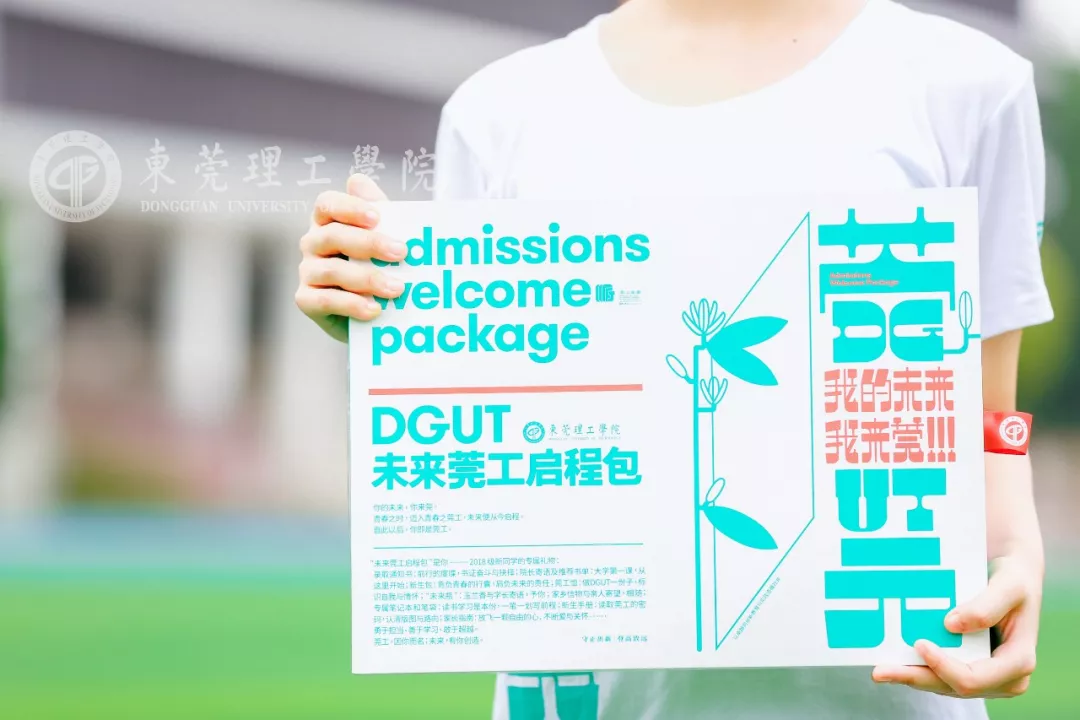 这一份2018级新同学的专属礼物内容比上一年更丰富,内附录取通知书、帆布袋、笔袋、莞工T恤、莞工笔记本、“未来瓶”、报到手册、地图册、莞工元素贴纸、行李贴纸、车辆出入证等超多豪华单品。