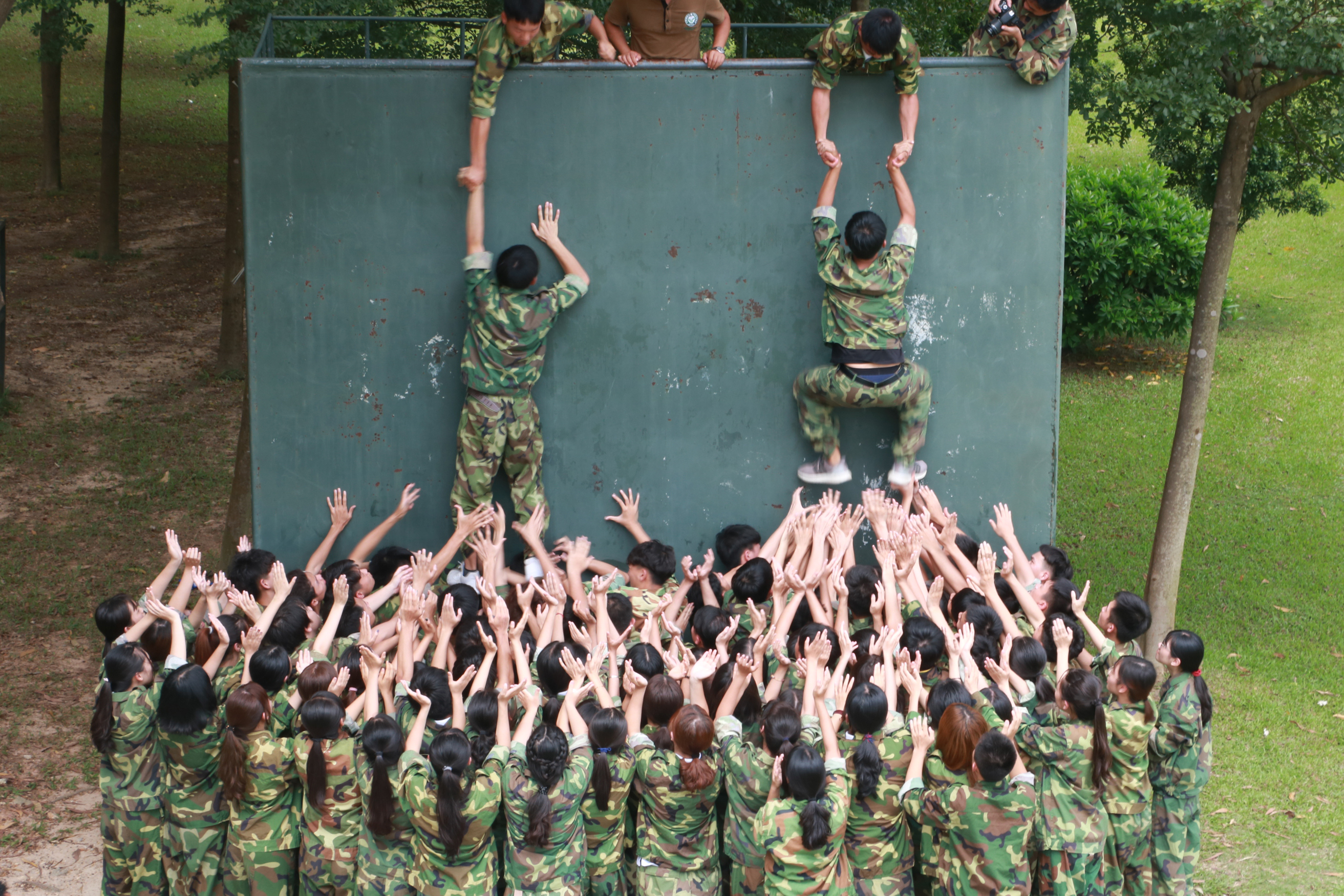 在东莞市国防教育基地,学员在教练的引导下体验了多个扩展项目。在毕业墙环节,学员们团结协作、互相帮助、互相支持,最终以16分钟全员翻过4.25米高的毕业墙。短短的拓展训练,给学员们留下了深刻的印象。在最后的分享环节,同学们畅所欲言,尽情表达素质拓展的所感所获。