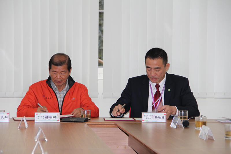 在2014年我校大力推进与台湾高等院校交流与合作基础上,今年我校持续深化对台高校交流与合作工作,着重推进落实引进台湾高校优质教育资源,推进面向市场、行业的应用型人才培养工作。为加速推进粤台产业科技学院的筹备设立工作,在台湾合作高校校长来访的基础上,应东莞市台商育苗教育基金会邀请,学校副校长杨敏林率莞城校区管委会、机械工程学院、电子工程学院、计算机学院、工商管理学院、经济与贸易系、教务处及港澳台事务办公室有关负责同志,于4月8日至14日赴台进行了为期7天的教育交流与洽商工作,旨在推进落实粤台产业科技学院首批六个联合培养专业方向的对接落实,签署相关合作协议,调研并借鉴合作院校在应用型人才培养、校企合作等方面的成熟经验。在东莞市台商育苗教育基金会的引荐下,我校还与台湾致理技术学院、佛光大学洽谈校际合作事宜,并签署了相关协议。