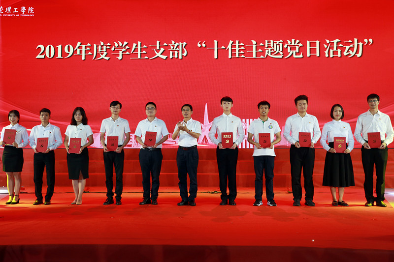 2019年度学生支部“十佳主题党日”名单)。校领导成洪波、马宏伟、赖日辉为获奖者颁奖。