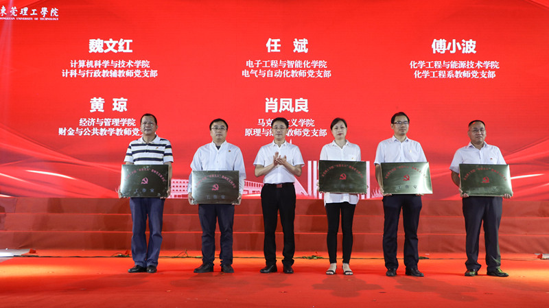 为进一步加强教师党支部书记队伍建设,成洪波为5个获得首批“双带头人”教师党支部书记工作室的获奖支部颁授牌匾。(