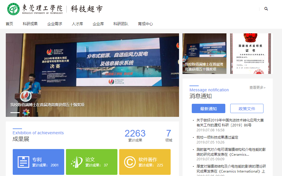 学校科技处、社科处于7月8日发布线上产学研合作平台--科技超市(http://kjcs.dgut.edu.cn)(试运行),形成科技化、市场化、规模化的产学研合作平台,建立盘活信息化的动态技术库资源。