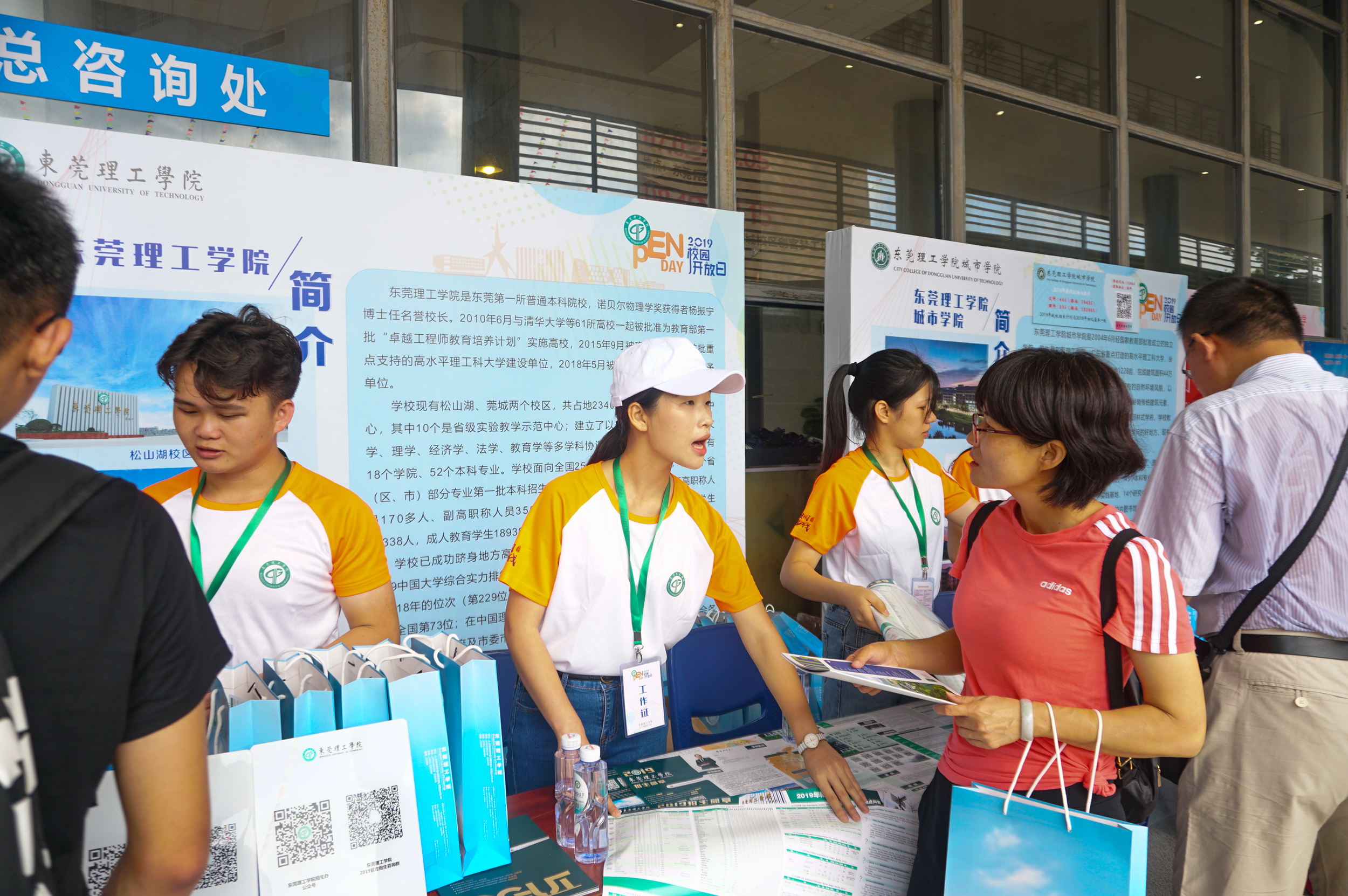 广东高校招生(东莞)咨询会现场,除了莞工各学院设摊位外,也吸引了华南理工大学、华南师范大学、暨南大学等50所高校参与咨询会,为东莞考生提供更准确的招生信息。我校各学院的咨询点前考生与家长络绎不绝,希望了解到学校招生的最新信息。