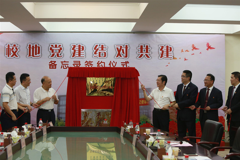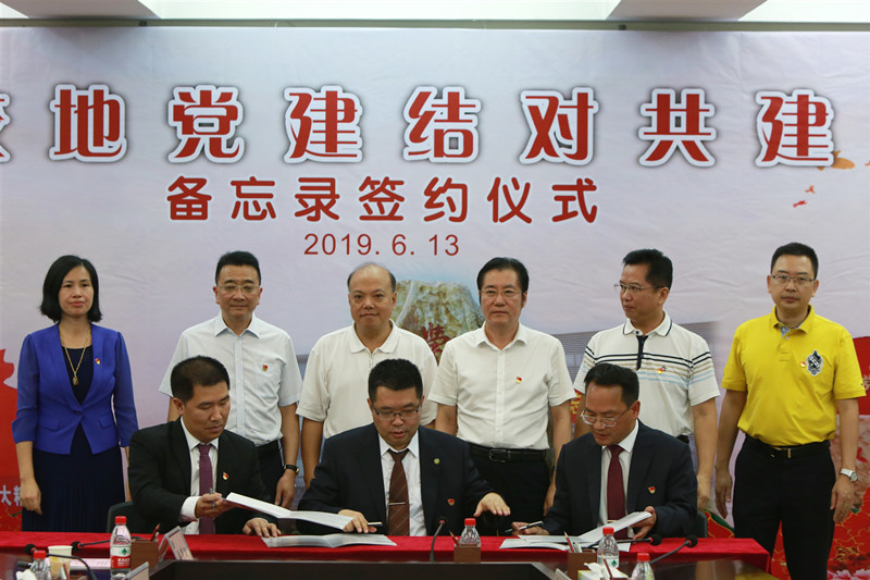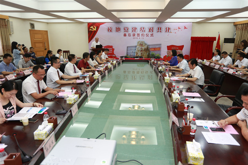 在出席仪式领导和嘉宾的共同见证下,莞城校区党工委书记刘健、东正社区党工委书记苏健翔、堑头社区党工委书记钟林辉共同签署了“校地党建结对共建”备忘录。