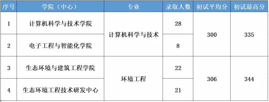 2019年是我校独立招收硕士研究生的第一年,我校共两个硕士点、四个二级学院(中心)进行招生,其中计算机科学与技术学科依托计算机科学与技术学院(公布招生简章时为计算机与网络安全学院)、电子工程与智能化学院进行招生;环境工程领域依托生态环境与建筑工程学院、生态环境工程技术研发中心进行招生。