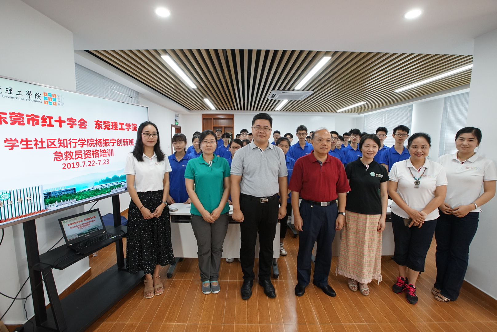 7月21至22日,学生社区知行学院开展第二期应急救护进社区的救护员培训活动,邀请东莞市红十字会专业培训教师授课,参训对象是杨振宁创新班全体同学及部分受吸引的教职工共31人。校党委副书记吕琦元,以及校党委宣传部、学生工作部、人力资源处、学生社区知行学院相关负责人出席培训现场。另外,因公出差的校党委副书记、校长马宏伟特意致电现场勉励学生。