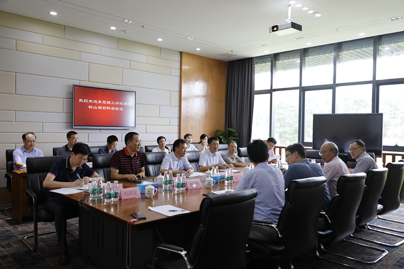 我校副校长李忠红、杨敏林、李文芳,党委办公室、学校办公室、科技处、社科处、人力资源处、机械工程学院、材料科学与工程学院负责人,松山湖材料实验室相关负责人等参加了座谈。