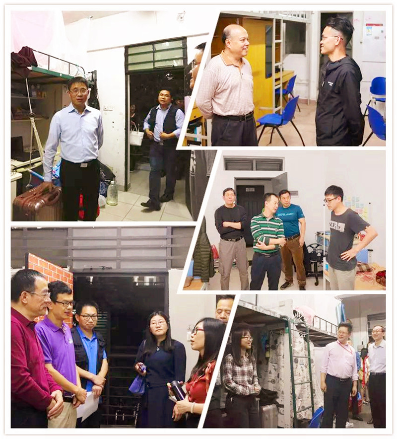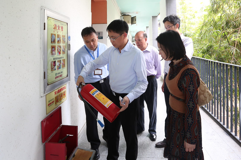 在走访中,校领导将安全工作放在首位,对学生宿舍的用电情况,学生社区、教学楼等地方的消防设施以及网络安全等进行了详细检查。