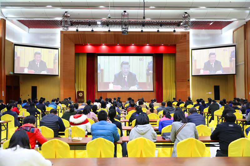 12月18日上午,庆祝改革开放40周年大会在人民大会堂举行。中共中央总书记、国家主席、中央军委主席习近平在大会上发表重要讲话,表彰了110名改革开放杰出贡献人员。学校领导成洪波、李琳、李忠红、杨敏林、马宏伟、李文芳与党政管理机构、群团组织、直属机构、产业机构等教职工在我校设立的分会场会议中心多功能厅收看了大会直播。各二级学院、图书馆、后勤管理办公室等组织师生员工通过多种途径、多种形式收听收看了大会盛况,认真学习习近平总书记重要讲话精神,纷纷畅谈学习体会。