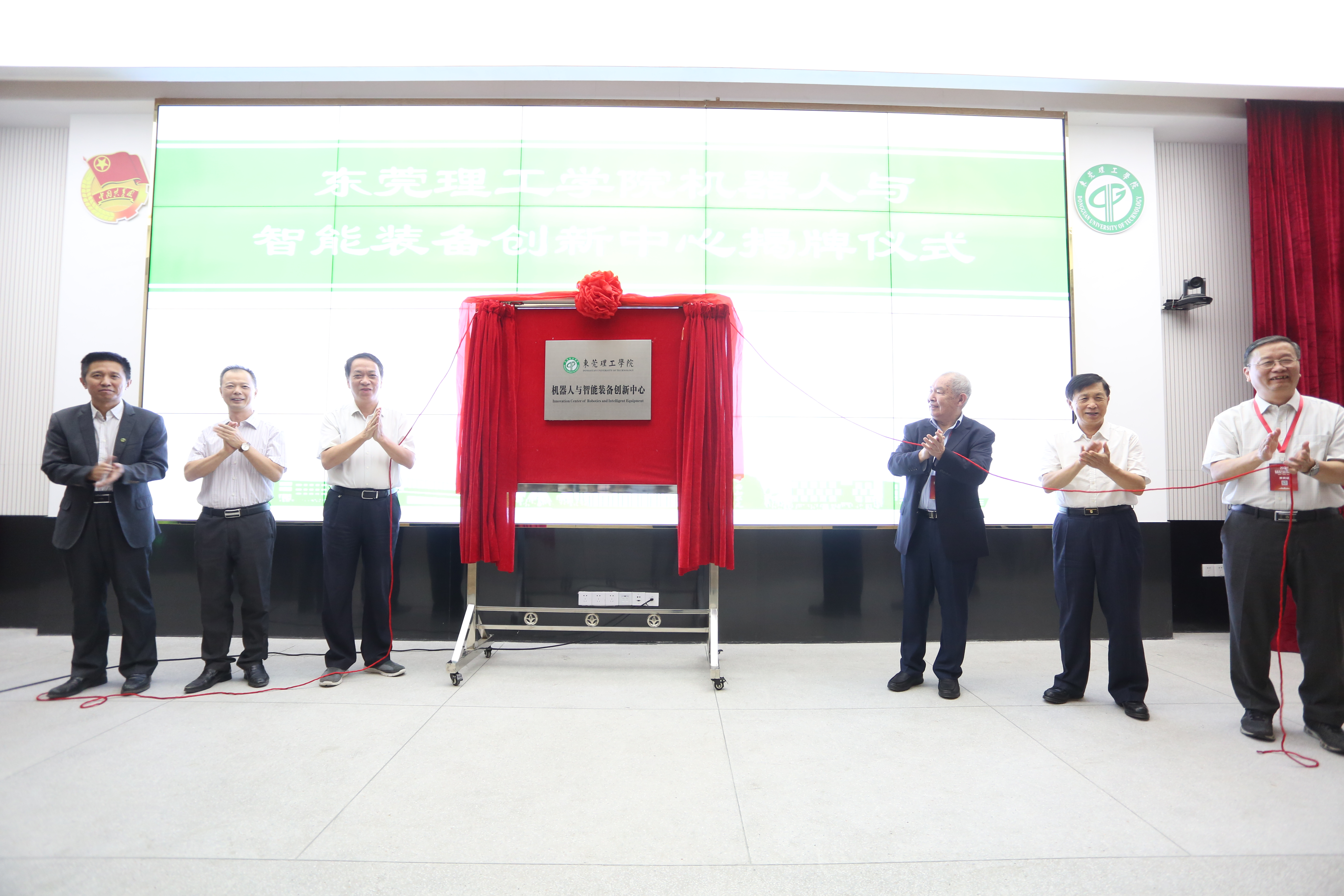 在报告会上,学校邀请熊有伦、王立军、吴子丹上台,与校领导共同为东莞理工机器人与智能装备创新中心揭牌。