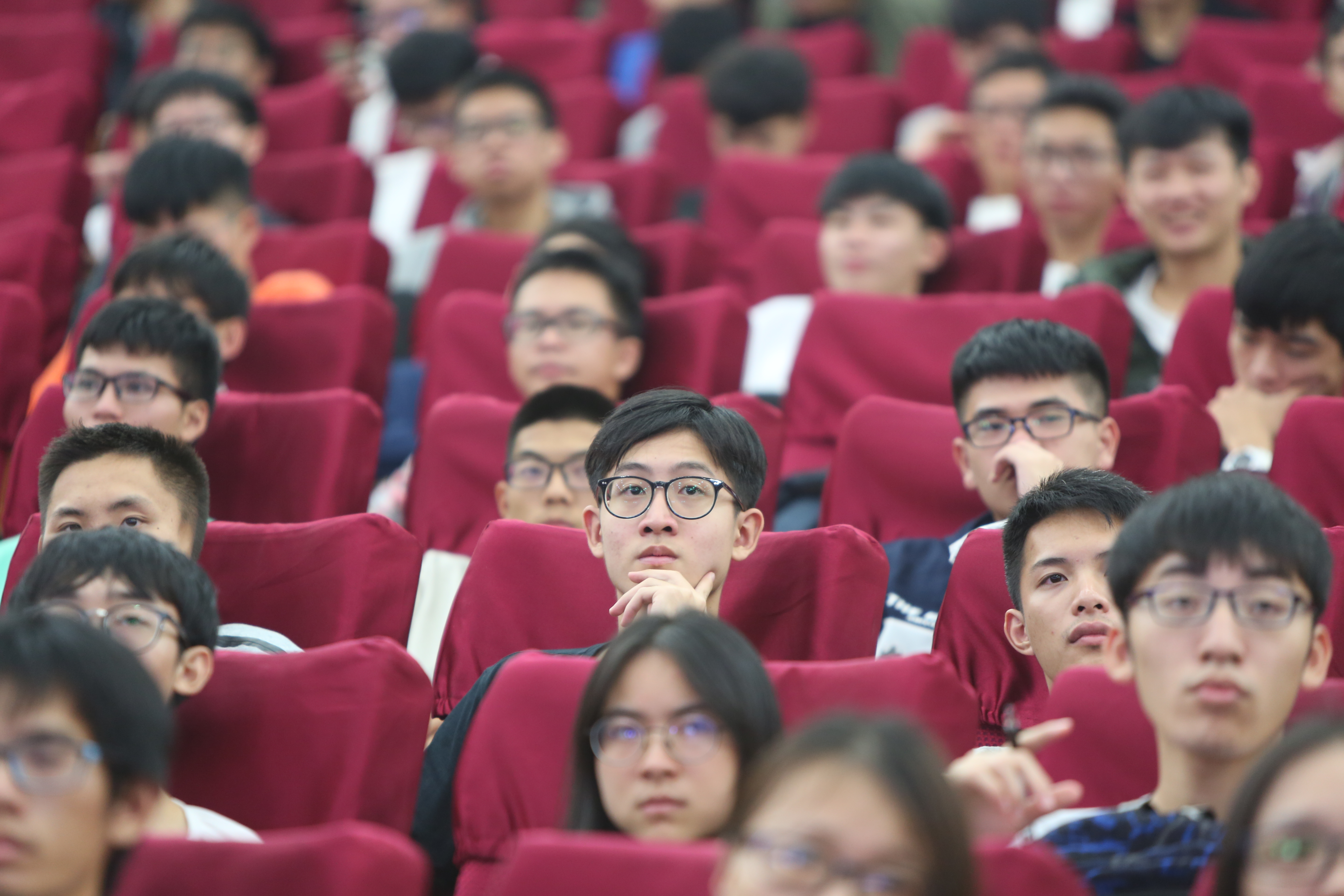 即使这样子,也远远满足不了同学们的需求。2017级工程管理班的廖同学因为摄影工作的需要,得以进场。他说:“我学习的专业与桥梁建设有很强的关系,班里很多同学想来,但是苦于没有抢到票,遗憾未来到现场聆听讲座。”为此,校团委还协同宣传部,开通了网络直播平台。