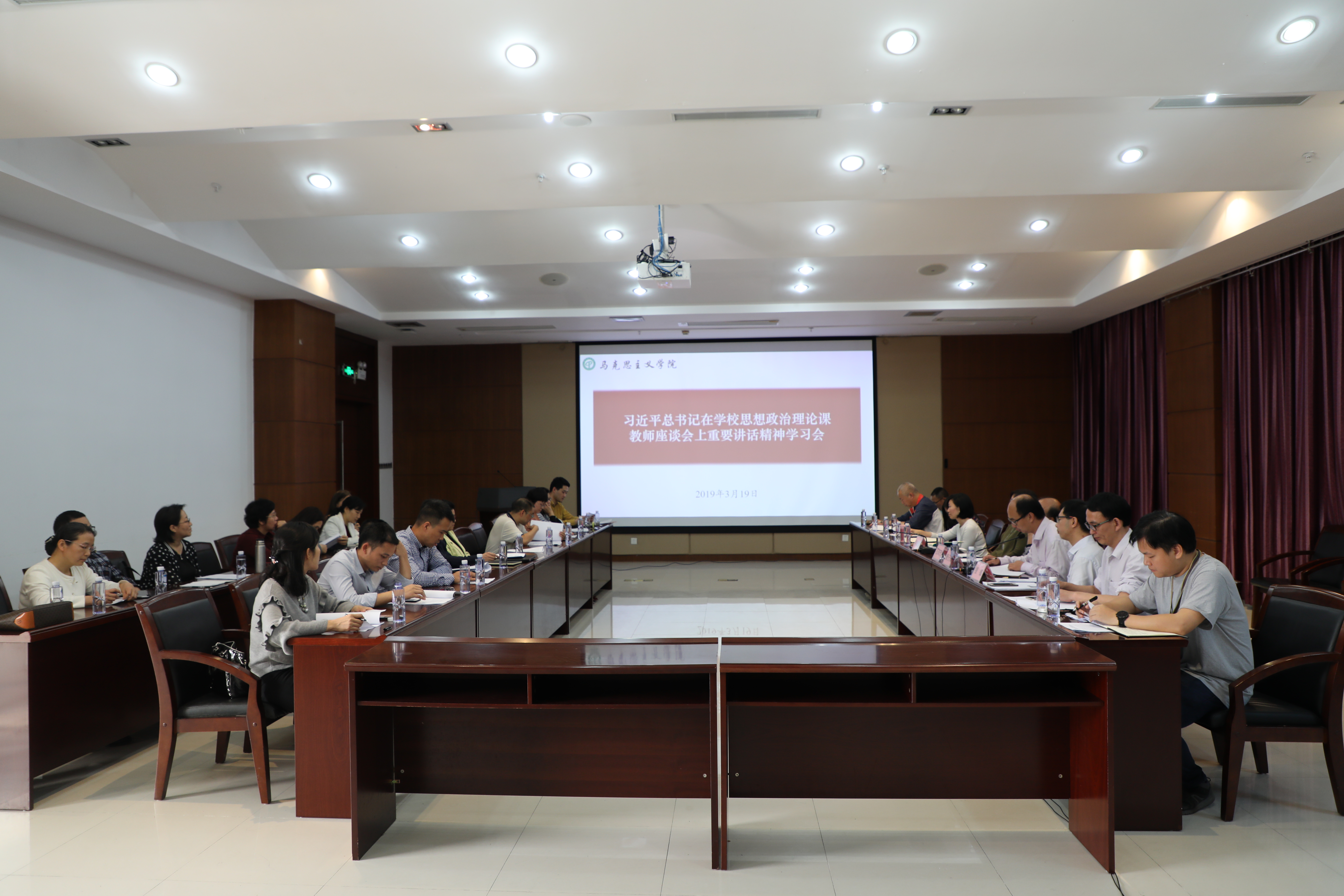 318日,中共中央总书记、国家主席、中央军委主席习近平在京主持召开学校思想政治理论课教师座谈会并发表重要讲话。19日,马克思主义学院组织召开全体教师座谈会,学习习近平总书记系列重要讲话精神。校党委副书记吕琦元、教师工作部部长何献青及马克思主义学院教职工参加会议。