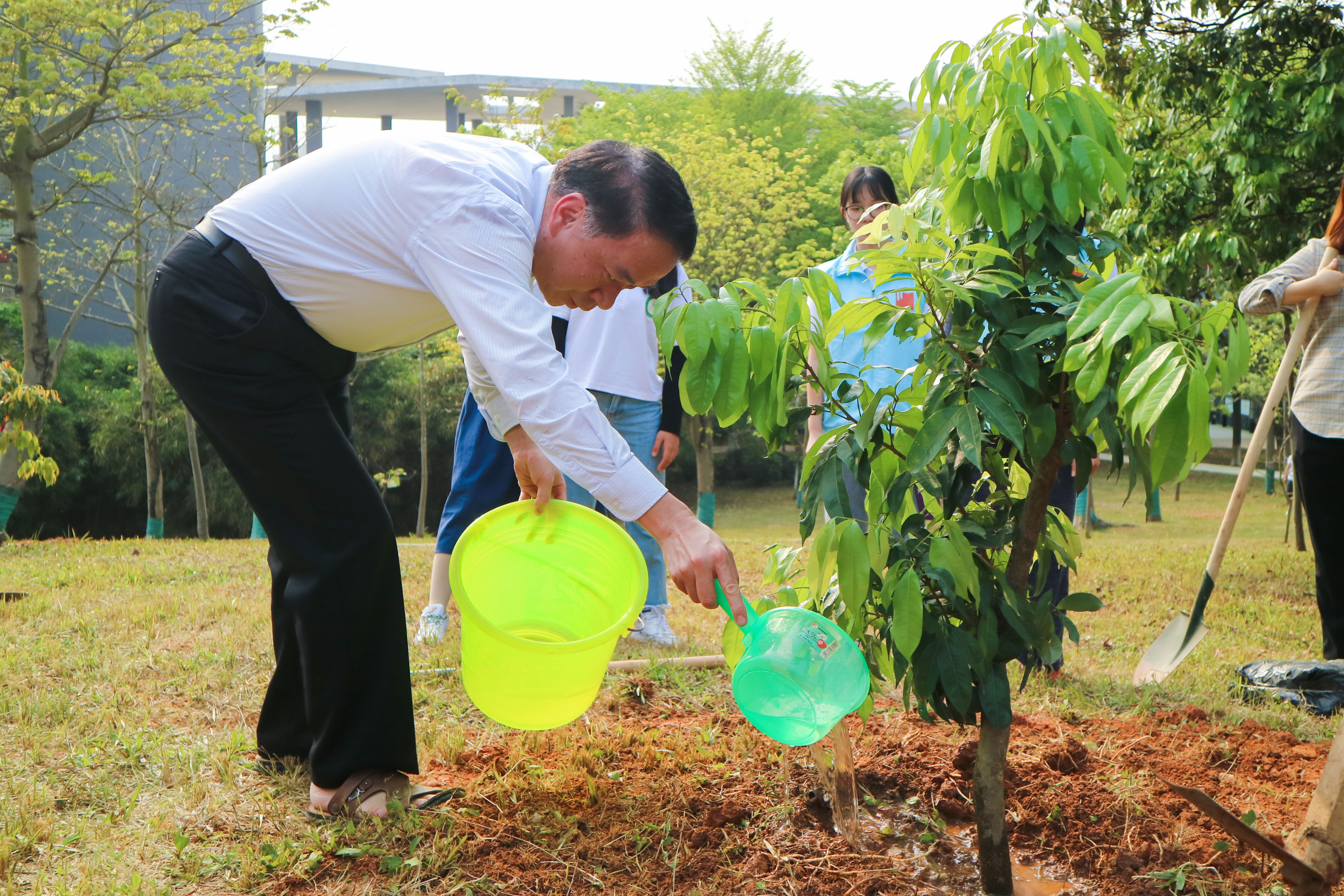 3月12日,副校长李忠红、马宏伟与学工部、团委、就业指导与服务中心、学生事务中心部分值班同学在学生中心学思广场旁空地开展植树活动。