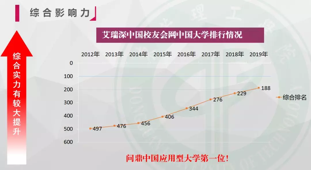 今年学校位列2019中国大学综合实力排行榜第188位,比2018年的位次(第229位)提升了41位!