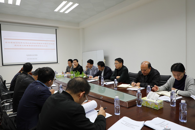 马克思主义学院执行院长唐元松介绍了学院在学习贯彻习近平总书记在学校思政课教师座谈会重要讲话精神的基本情况,随后围绕我校思想政治理论课建设情况,分析了已经取得的成绩、面临的主要挑战以及未来努力方向。与会同志各抒己见,就如何持续改进我校思想政治理论课状况发表了看法。