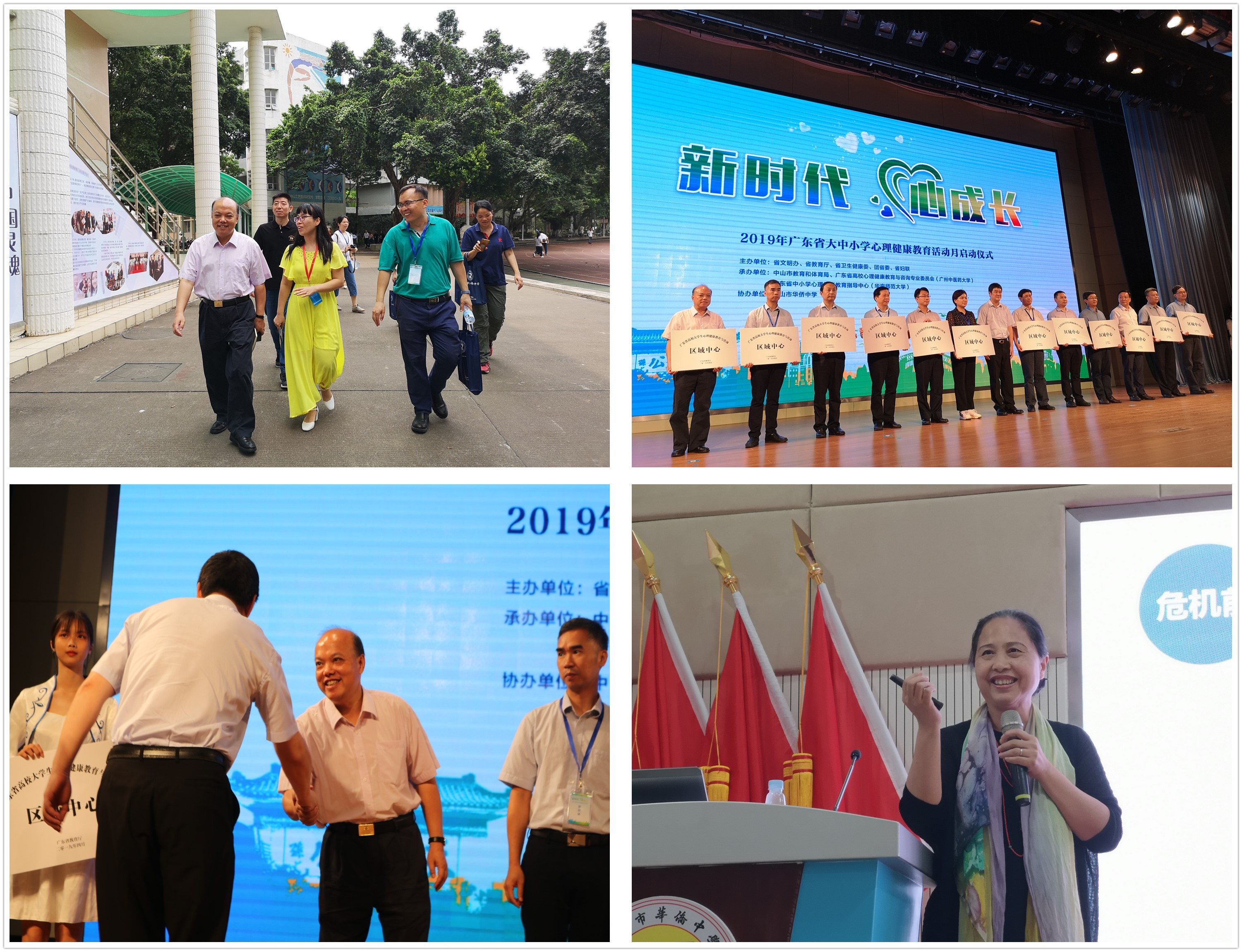 5月23日,由广东省文明办、教育厅、卫生健康委、妇联,团省委联合主办,中山市教育和体育局、广东省高校心理健康教育与咨询专业委员会、广东省中小学心理健康教育指导中心共同承办的2019年广东省大中小学心理健康教育活动月启动仪式在中山市华侨中学举行。此次会议主题是“新时代、心成长”,广东省教育厅副厅长邢锋,各部门工作负责人出席会议。我校党委副书记吕琦元带队参会。学生社区知行学院常务副院长苏亚玲老师受邀在大会上作专题报告。