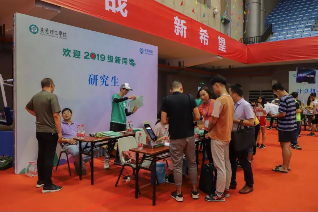 8月31日,我校松山湖校区体育馆、莞城校区4号楼大厅集聚着前来报到的2019级新生,在蔚蓝的天际下,校园里处处都是第一次相见的欢喜,处处充满了热闹的气息。